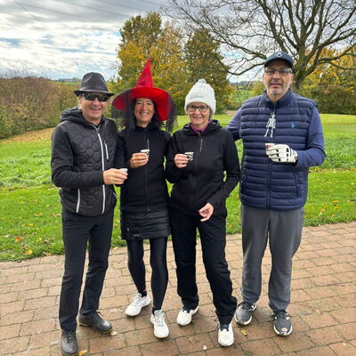 Passend zu Halloween, begann der Tag nass und grau – am Morgen regnete es in Strömen, doch pünktlich eine Stunde vor dem Start verzog sich der Regen. Was blieb, war ein schaurig windiger Nachmittag – perfekt für das Halloween Turnier im Mafia Scramble!