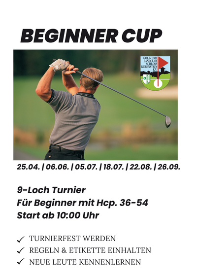Im Golf verbessert man sich in der Regel von Jahr zu Jahr. Doch irgendwann muss man einfach anfangen, und genau dafür haben wir diese Turnierserie für Anfänger und Golfer mit höheren Handicaps geschaffen. Unter Gleichgesinnten spielt es sich oft leichter, weshalb diese Turniere besonders gut geeignet sind, um das Handicap zu verbessern. Nach der Siegerehrung stehen wir gerne für Fragen zu Regeln, Abläufen und weiteren Themen zur Verfügung. Jeder Clubmeister hat schließlich auch einmal als Anfänger angefangen.