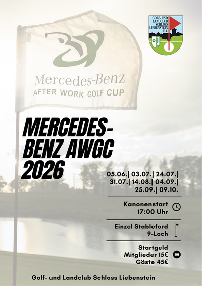 Der Mercedes-Benz After Work Golf Cup ist speziell für berufstätige Golfer konzipiert, die einerseits die sportliche Herausforderung suchen, andererseits aber nur selten Zeit für tagesfüllende Golfrunden haben. Von Mai bis September findet jeden Monat, freitags um 17 Uhr per Kanonenstart, ein AWGC auf dem ausgewiesenem 9-Loch Kurs statt.
