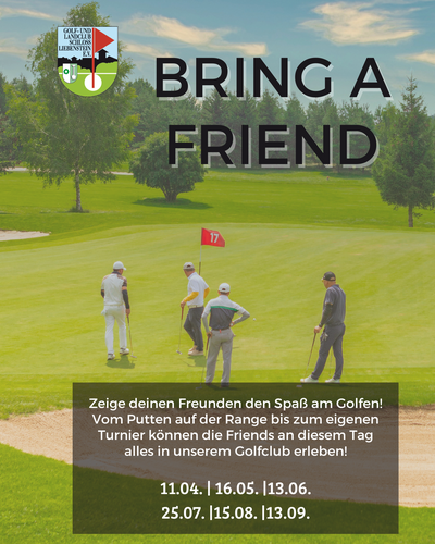 Vom Putten und langem Spiel auf der Range bis zum eigenen kleinen Turnier können die Friends an diesem Tag alles in unserem Golfclub erleben!